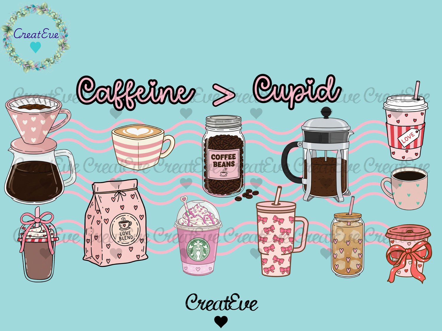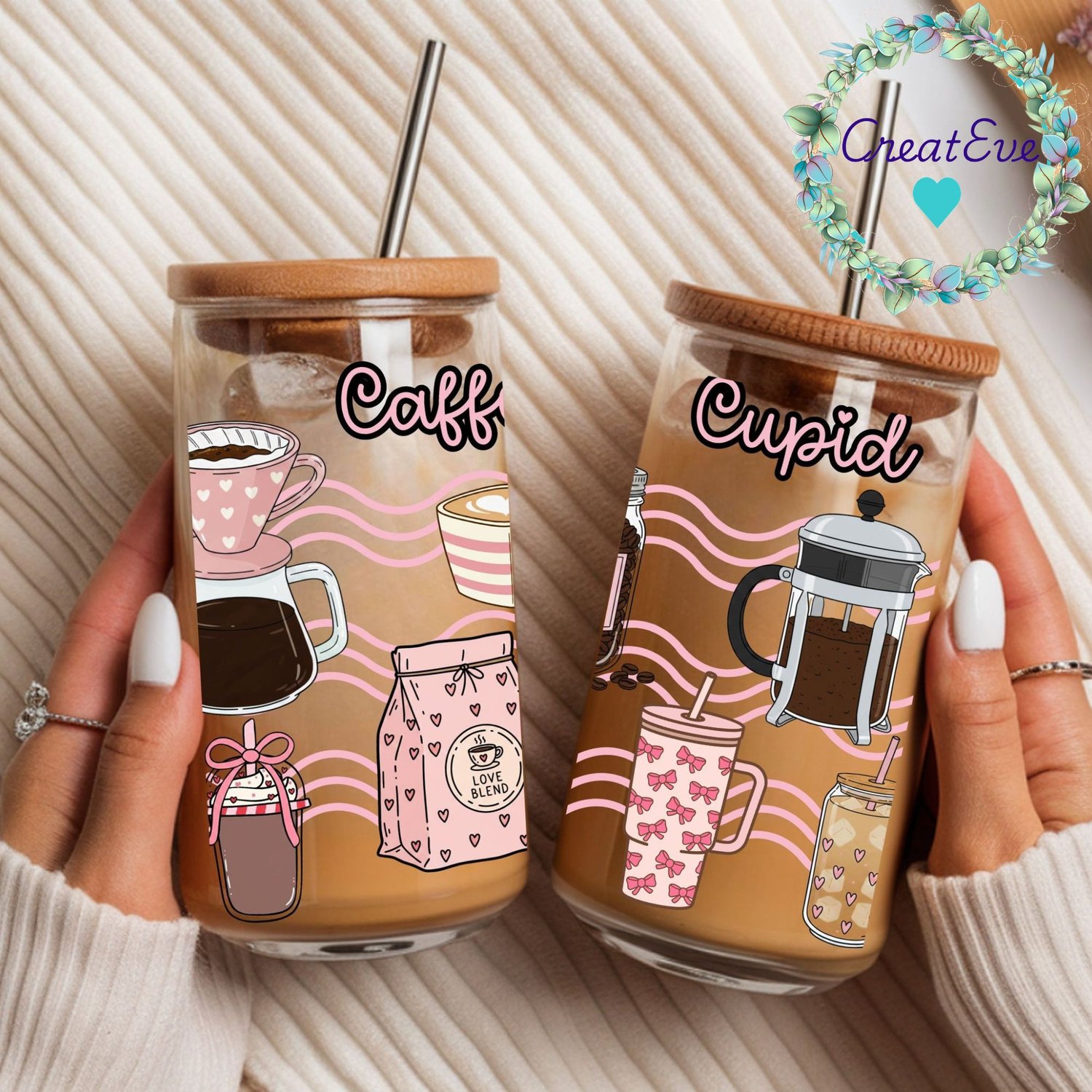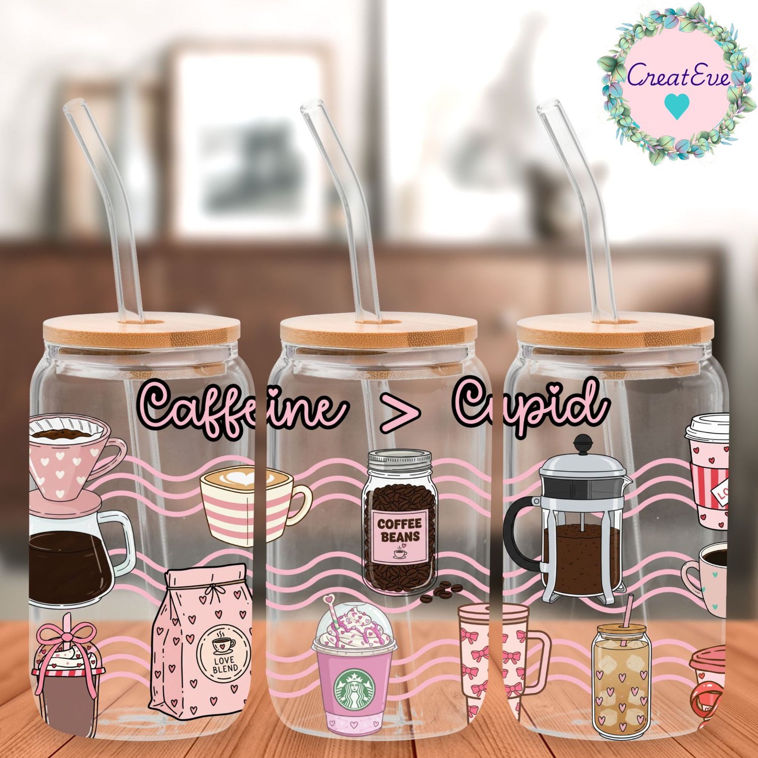 Valentines Coffee Lovers 16oz Libbey Glass Can PNG, Transparent Background, 300dpi, 9.75" x 4.8"