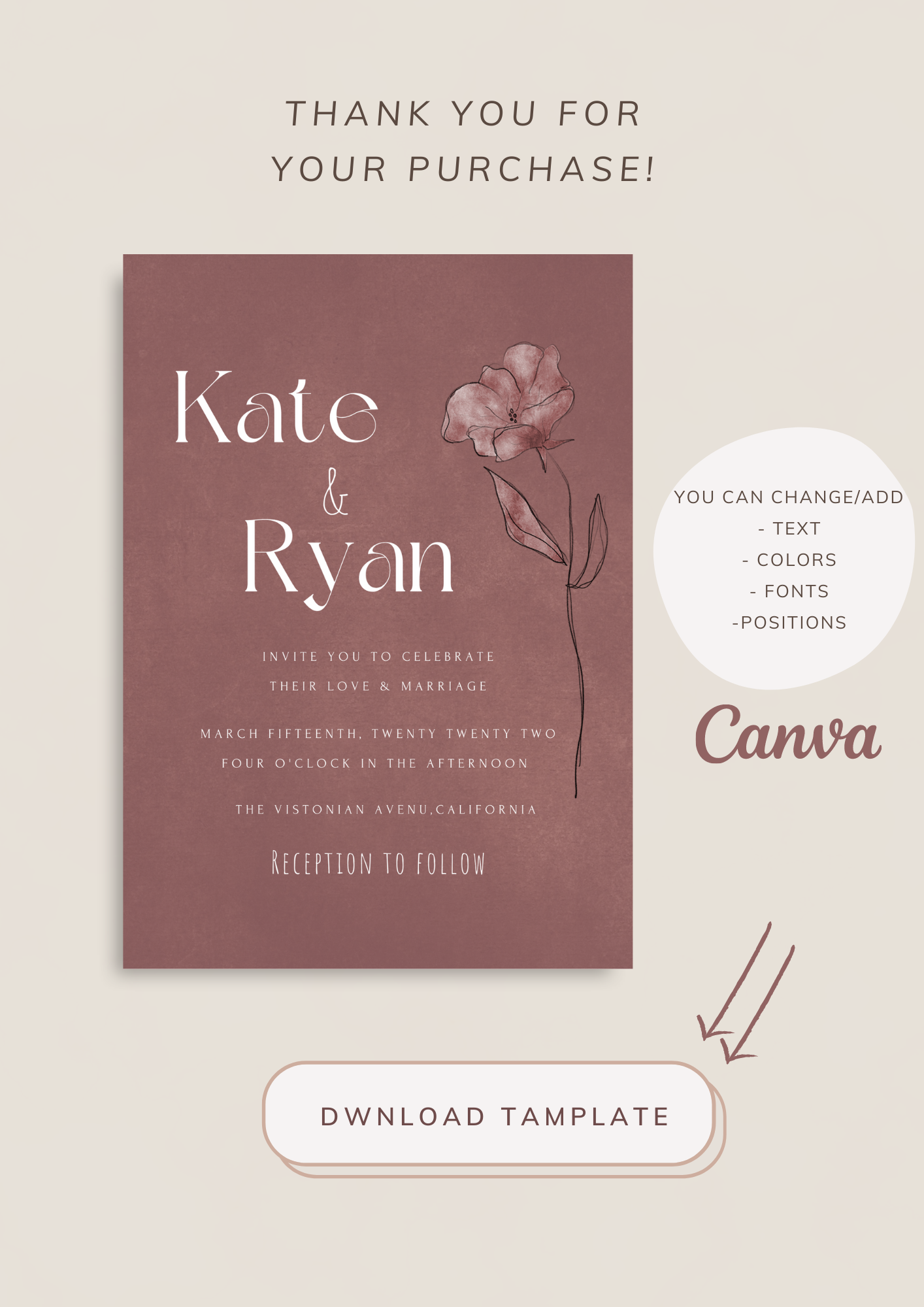 Wedding Invitation Canva Template, Canva Wedding Invitation Template, Simple Wedding Invitation Template, Modern Simple Wedding Invitation
