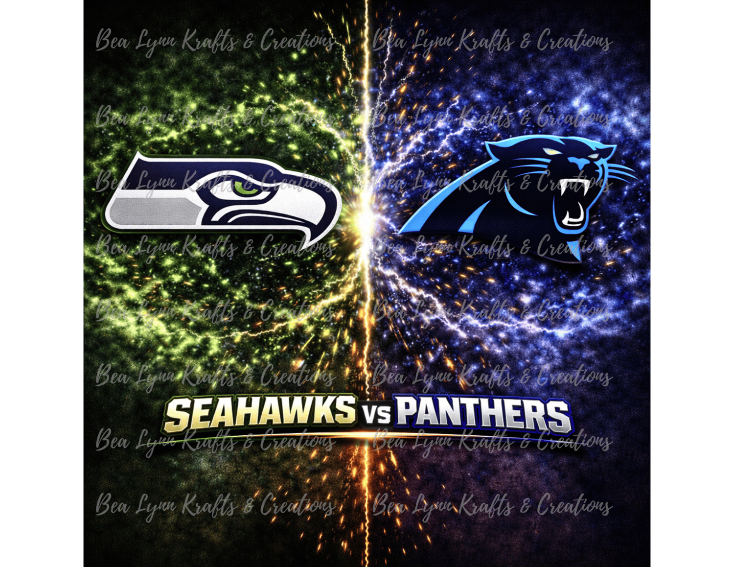 Seahawks vs Panthers Split Lightning Football Matchup PNG Sublimation Design