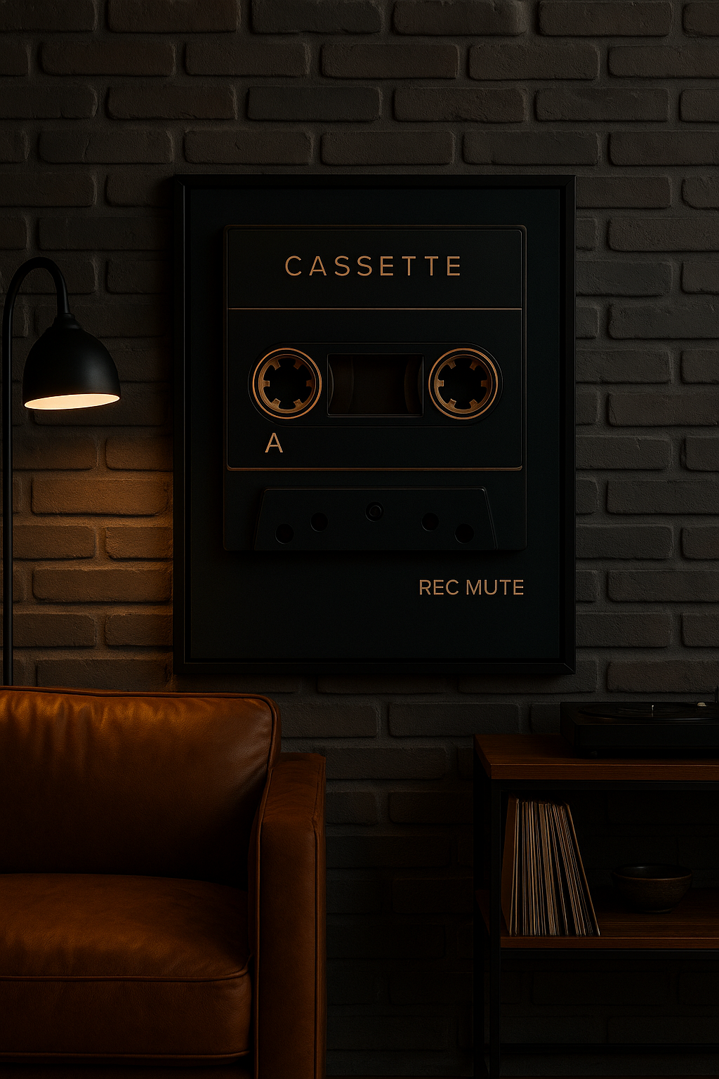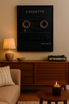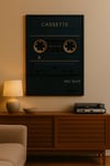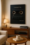 Celebrate the golden era of cassette tapes with this bold matte charcoal and gold wall art. Perfect for music lovers, home studios, and anyone who loves vintage nostalgia.