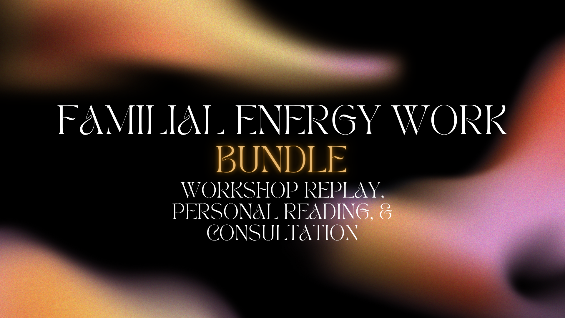 This bundle includes the Creative Spirit Work focused Familial Energy Workshop replay, the Creative Spirit Workbook, a personalized Familial Energy Work reading, and a post-reading debrief/consultation. You will be contacted through the email address on file for your purchase. Please look for an email from shakurspiritualservices@gmail.com