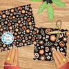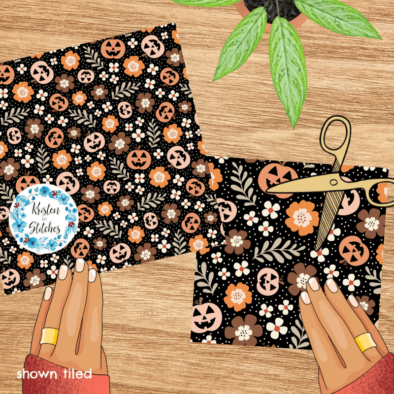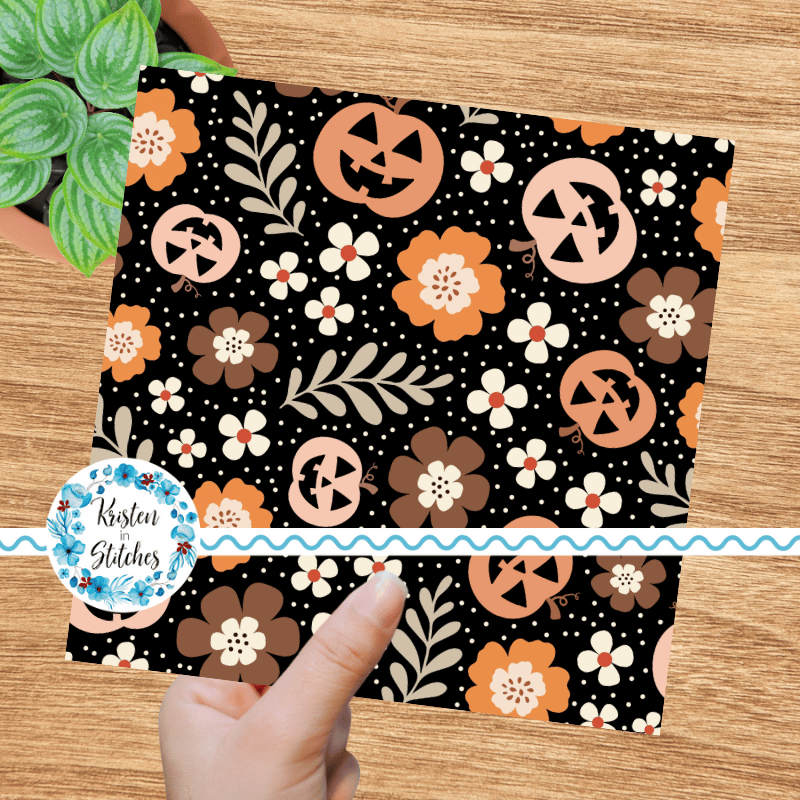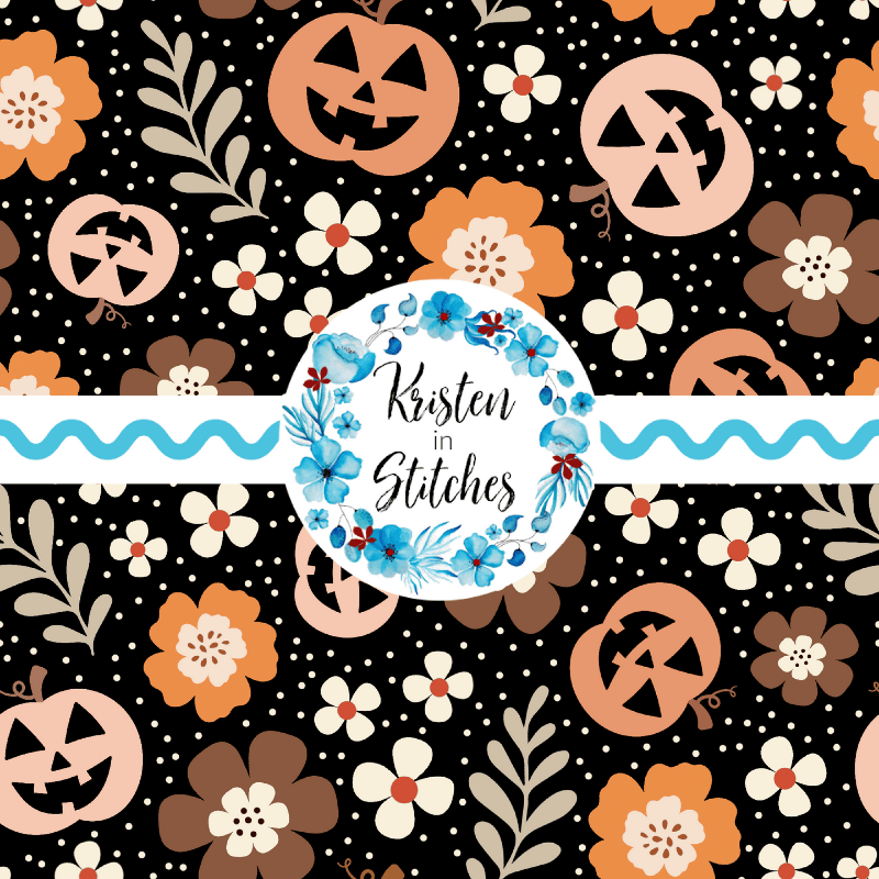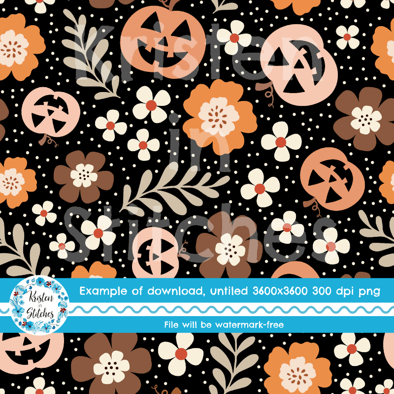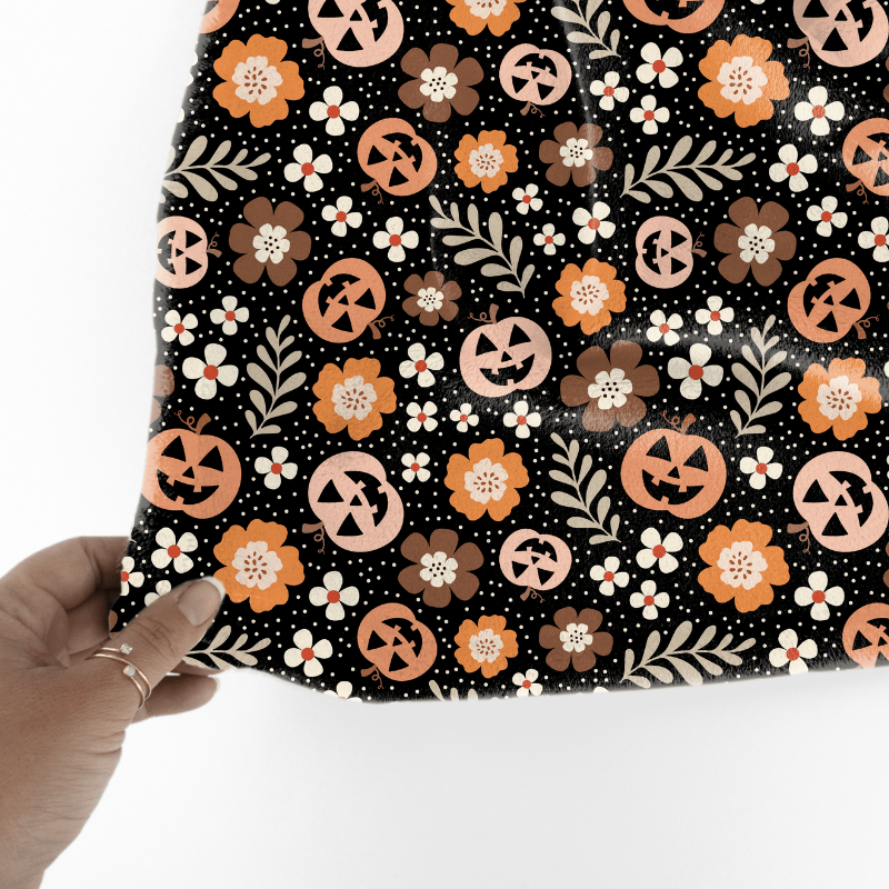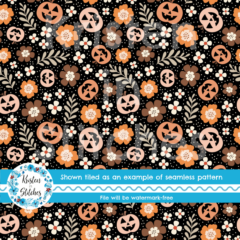 Pretty Jackolantern Pumpkin Fall Boho Floral Seamless Pattern, Autumn Flowers