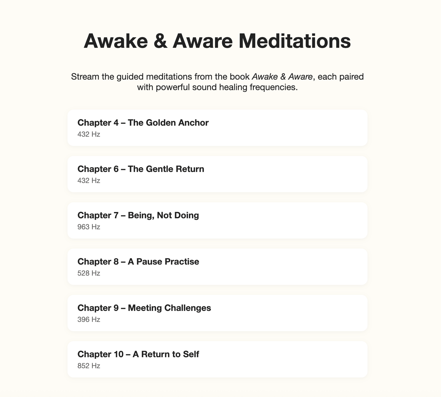Individually, each program is powerful. Together, they create a complete mind–body reset system: meditation, sound healing, daily structure, and sleep support.