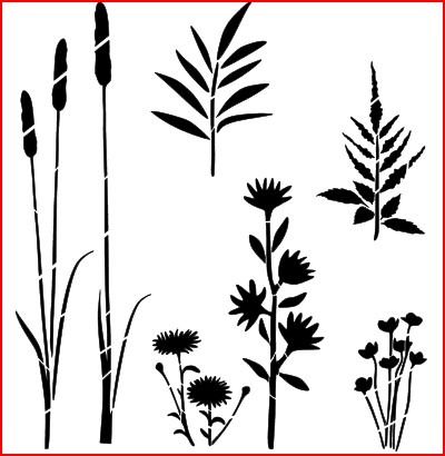 12x12 Stencil SVG & JPG - Wildflowers, Cattails