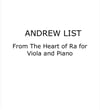 From The Heart of Ra, a work for viola and piano was commissioned by Sinquefield Charitable Foundation and written for violist Leslie Perna. The work is in six sections each representing how ancient Egyptians though of the soul and its journey in the afterlife. The first part is Ren which is literally your name: it lives for as long as you are remembered, or can be read about on inscriptions, or included in prayers for the ancestors and their achievements. The second is Ba, that which makes each of us unique and different, that which makes us strive and achieve, the motivator but also the hungry elemental force that needs food and sex. The third part Ib is literally the heart, formed from a single drop of clotted blood extracted from your mother's heart at the hour of your conception or birth. By heart, the Egyptians meant not just the organ for pumping blood around your body, but the seat of your soul, the good directing force in your life, searching after truth, peace and harmony. Fourth is Sheut or your shadow, and by extension the other you, as well as being used to describe a statue, a model or a painting of a human. Often the Pharaohs had a shadow box where they kept part of their shadow.