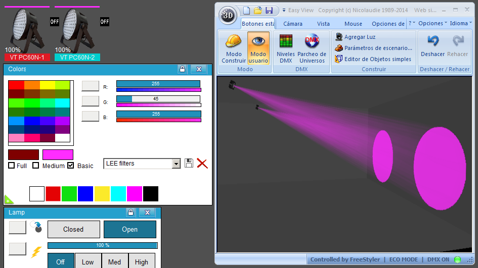 Esta Librería SSL2 está optimizada para trabajar con Magic 3d Easy View. Es decir para ver una representación 3D de las secuencias que estemos realizando con Freestyler, QLC+ o cualquier otro soft que se conecte con Magic 3d.