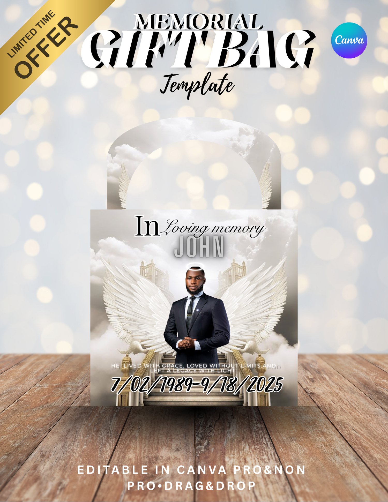 Honor the memory of a loved one with this beautifully designed Memorial Gift Bag Template. Perfect for funerals, celebrations of life, or remembrance gatherings, these printable bag designs provide a heartfelt way to share keepsakes, tokens, or small treats with family and friends.