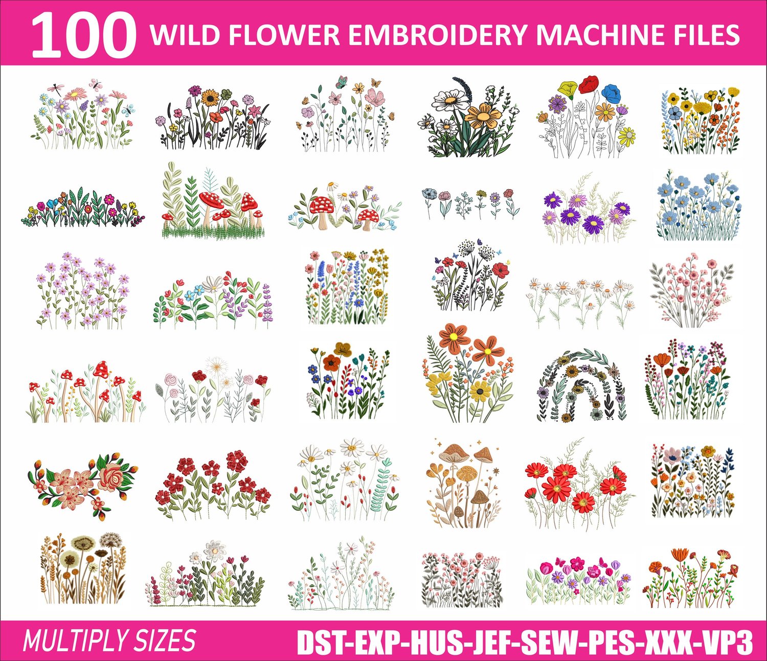 wild flower machine embroidery files, instant download