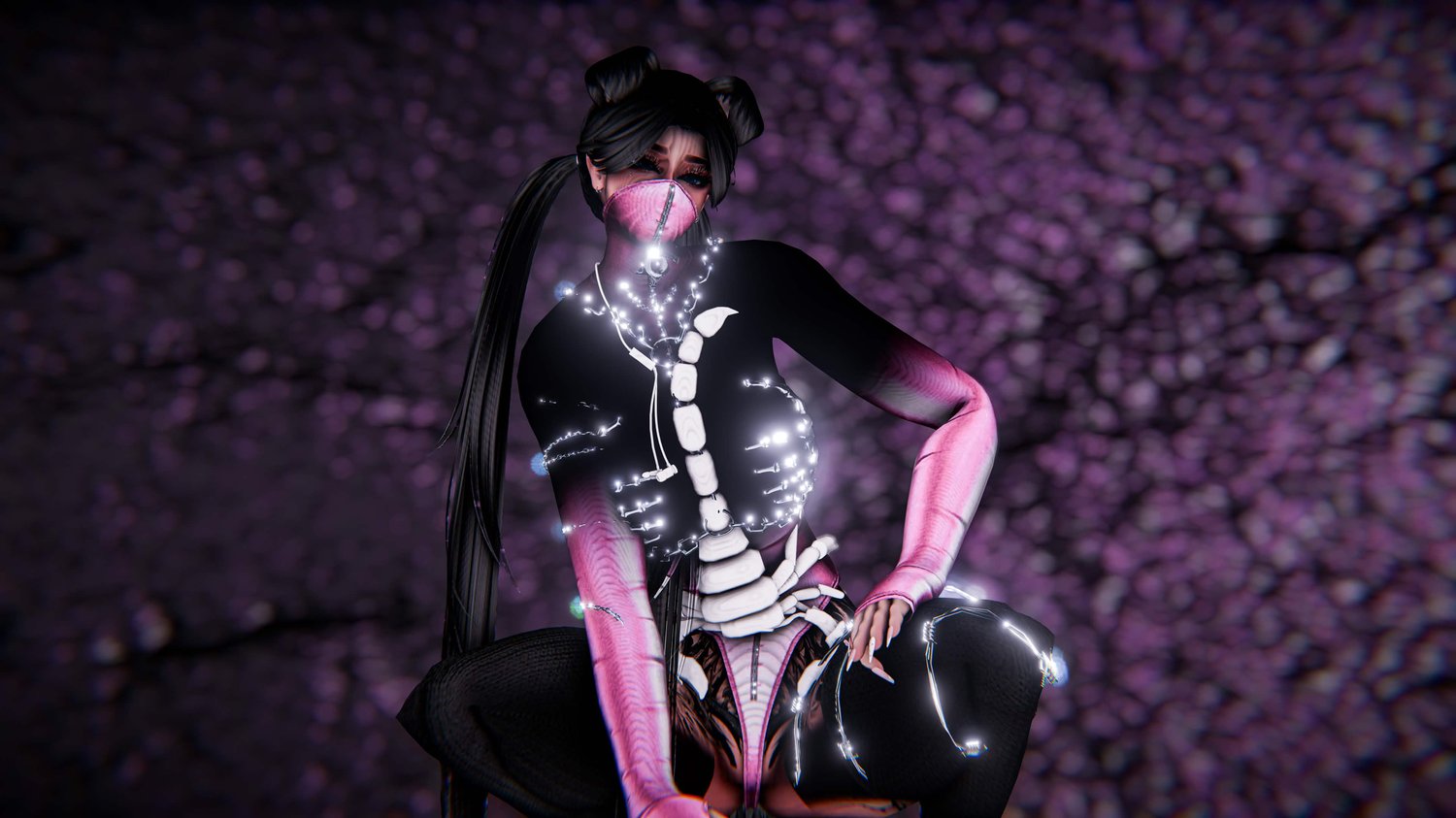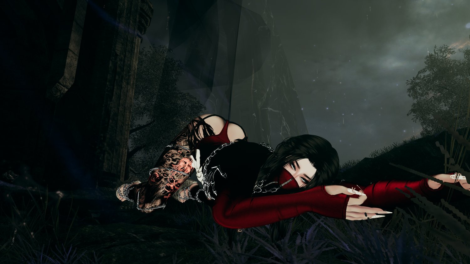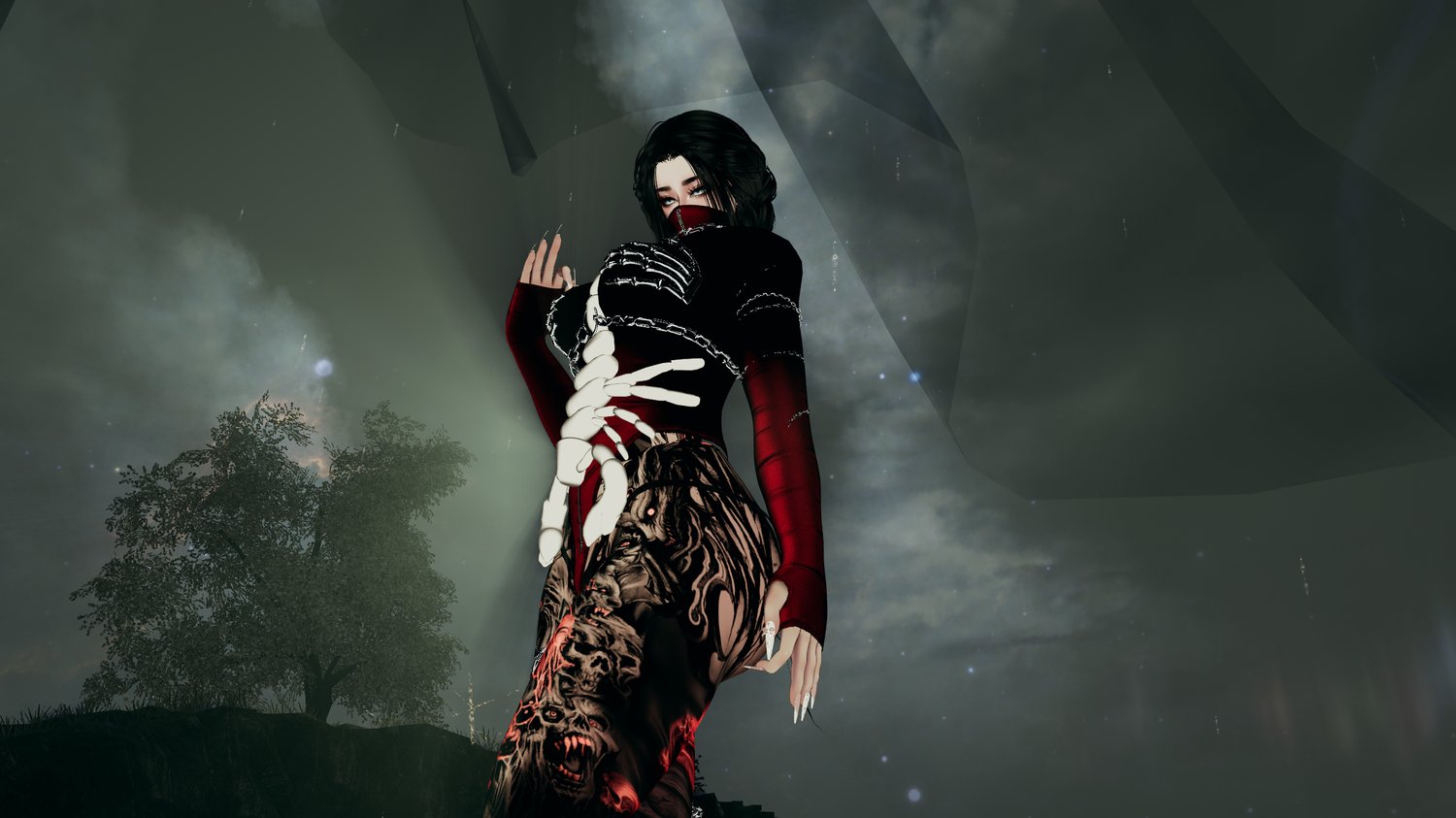 - Skeleton Bra, Yami Set, Love Corset, Amaya Hair, Chained Heels, Sultry Dress - Weeeby