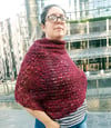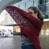 Lo scialle ha una forma piuttosto semplice, il centro è un triangolo top down tradizionale mentre il bordo richiede di aumentare improvvisamente del 20% circa le maglie, dopo le quali non ci saranno altri aumenti. Il triangolo centrale usa un punto relativamente complesso in cui il numero di maglie passa continuamente da un multiplo di 6 a un multiplo di 8 e di nuovo a un multiplo di 6. Questo richiede una certa attenzione, ma una volta capito il meccanismo diventa facile “leggere” il motivo e lavorare senza problemi.