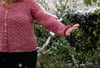 Il se tricote du haut vers le bas (top-down), selon une construction drop shoulder, en aller-retour pour le corps et en rond pour les manches. Les bandes de boutonnage, boutonnière et l’encolure sont relevées après coup. Toutes les finitions sont tricotées au point mousse et se termine par un rabat en faux i-Cord.