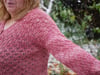 Le prototype a été tricoté avec la base chaussettes de Vilaines (425 m / 100 gr, 75% mérinos, 25% nylon), coloris Envie de fraises.