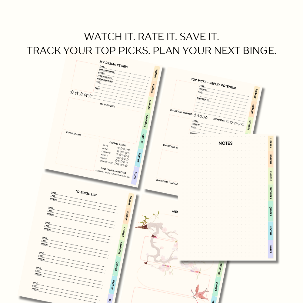Meet your new drama companion. The Drama Diaries is made for fans who love keeping track of what they watch while building their personal hall of fame. Whether you're juggling multiple shows or carefully curating your Top Picks, this journal helps you stay organized without losing the fun.
