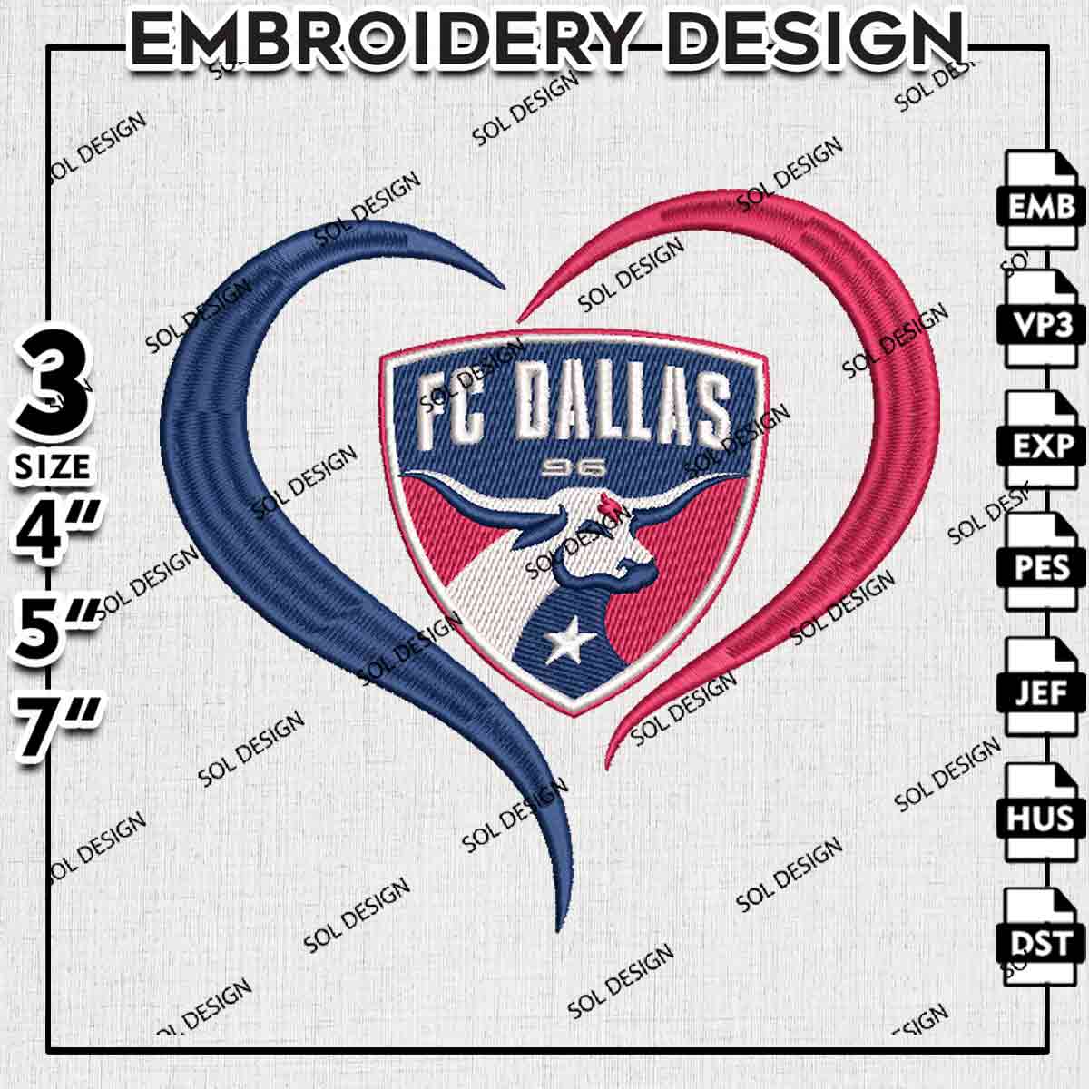MLS FC Dallas Heart Logo Embroidery Designs, FC Dallas Embroidery Files, MLS FC Dallas Logo Embroidery, Major League Soccer Machine Embroidery Design, Digital Download