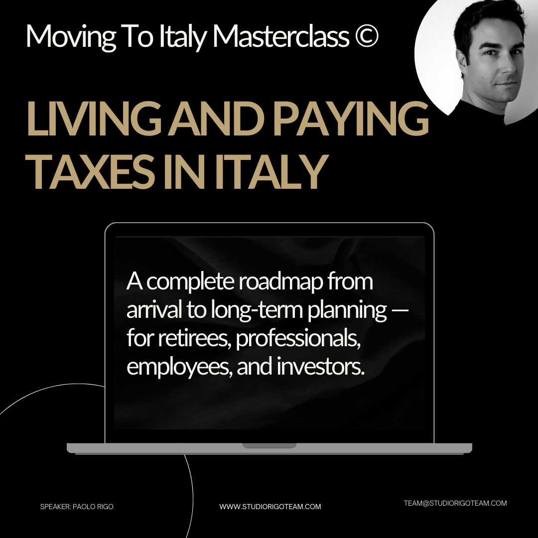 Masterclass: Living and Paying Taxes in Italy (INVESTOR)