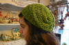 This is a simple, lovely, easy to wear beret that can be made on any round or adjustable knitting loom with a multiple of 5 plus 1 stitches. A variety of yarns from chunky to DK weight will work, but the lace shows best in the lighter weight yarns. Stitches used are e-wrap knit, purl, and a very simple eyelet with step by step, peg by peg directions given.