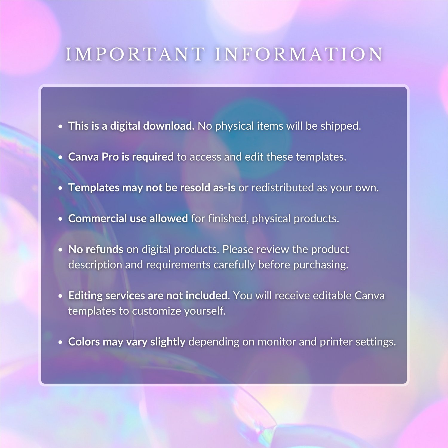 No refunds on digital products. Please review the product description and requirements carefully before purchasing.