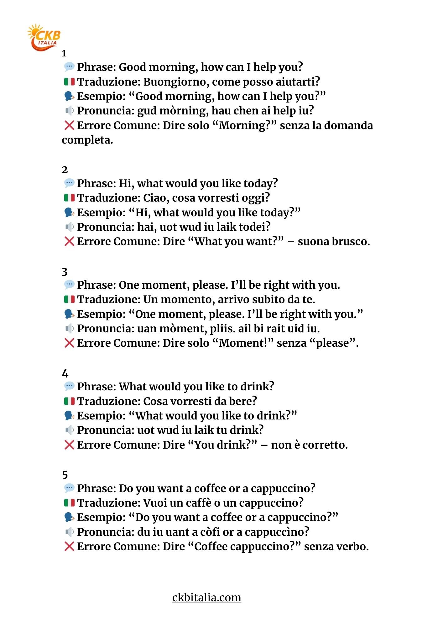 Metti i tuoi clienti stranieri a proprio agio — con frasi semplici che puoi usare subito.