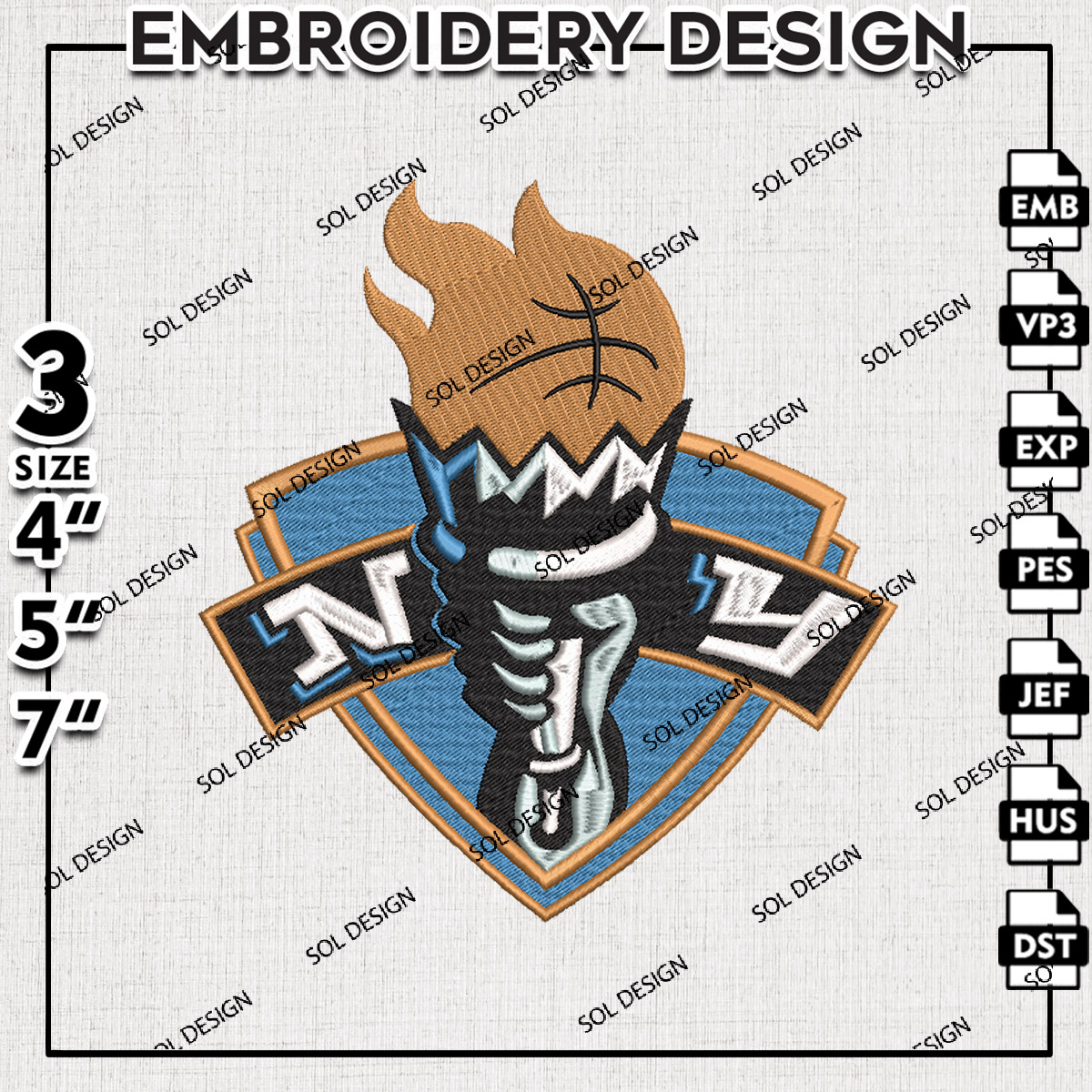 NY New York Liberty Basketball Team Logo Embroidery Files, WNBA New York Team Embroidery Designs, Basketball Teams, 3 sizes, Machine embroidery designs, Digital Download