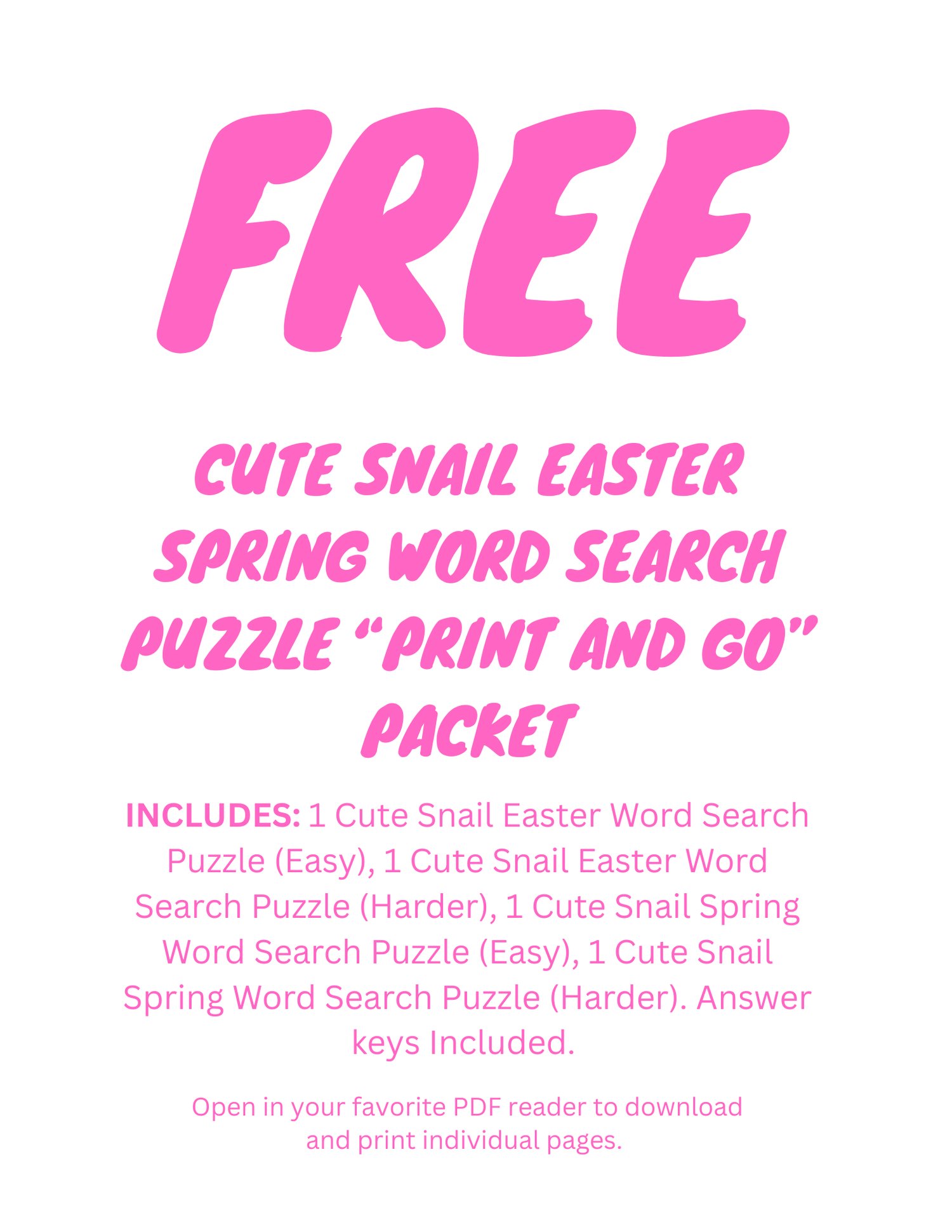 Perfect for kids and adults who love snails, smiles, Easter, Spring and word search puzzles!
