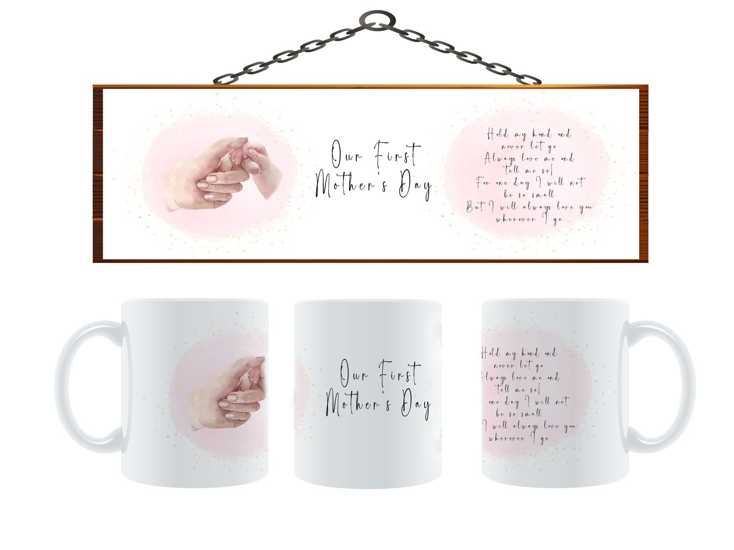 Gorgeous 1st Mothers Day Cushion and Mug Design Hands