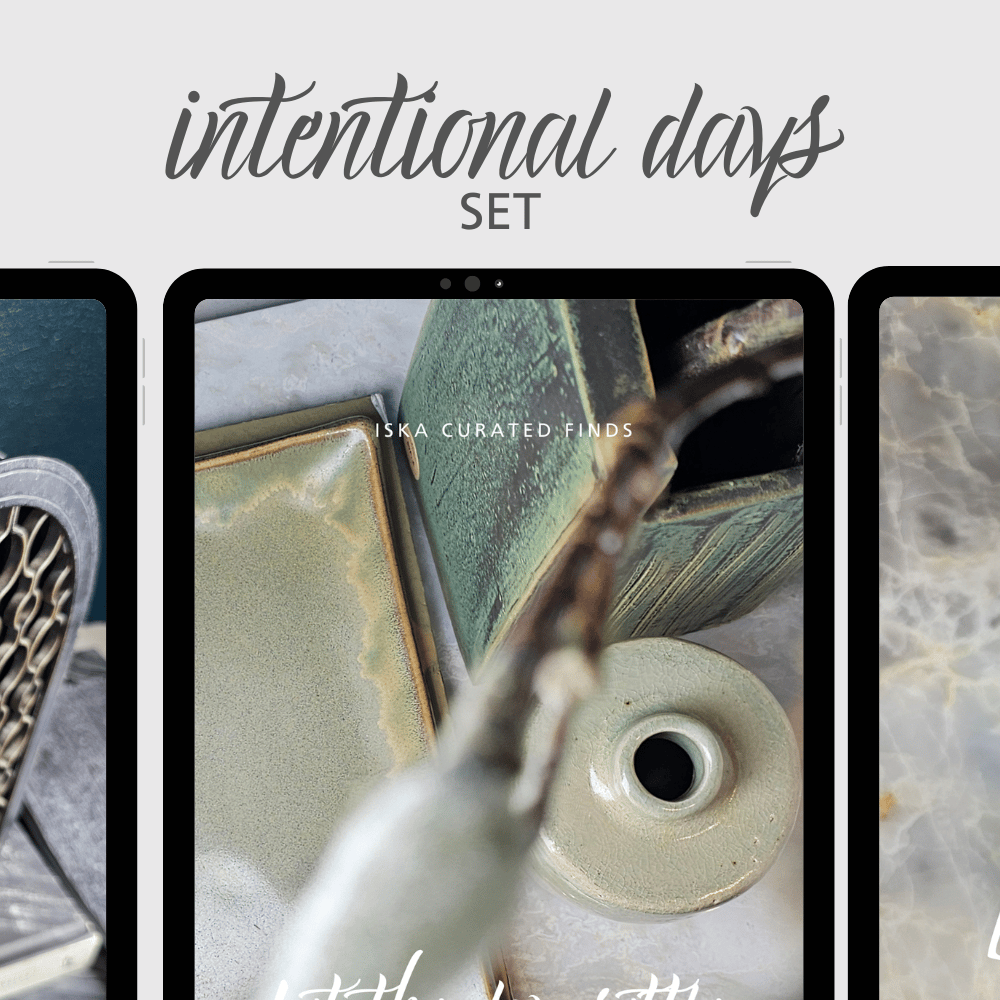 The Intentional Days Set brings together a thoughtfully designed digital planner and reflective quote cards that gently invite you to slow down, notice more, and plan your days with purpose.
