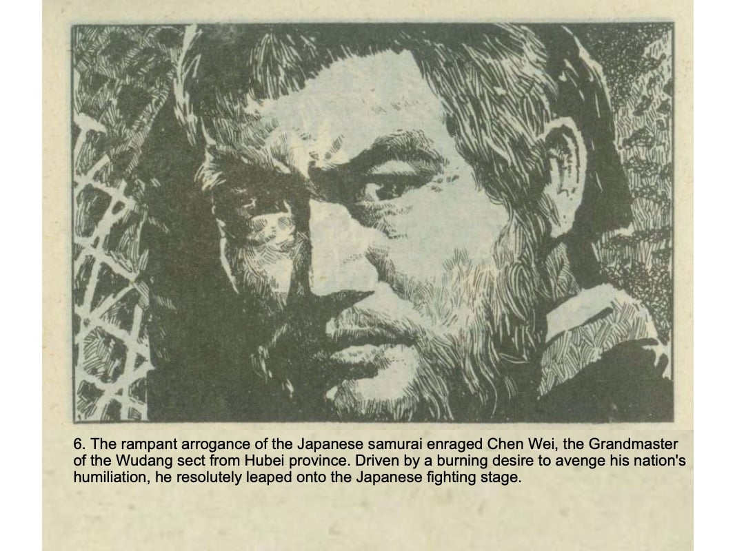 6. The rampant arrogance of the Japanese samurai enraged Chen Wei, the Grandmaster of the Wudang sect from Hubei province. Driven by a burning desire to avenge his nation's humiliation, he resolutely leaped onto the Japanese fighting stage.
