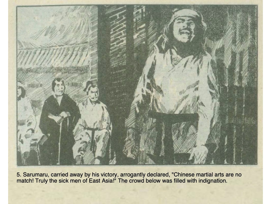 5. Sarumaru, carried away by his victory, arrogantly declared, "Chinese martial arts are no match! Truly the sick men of East Asia!" The crowd below was filled with indignation.