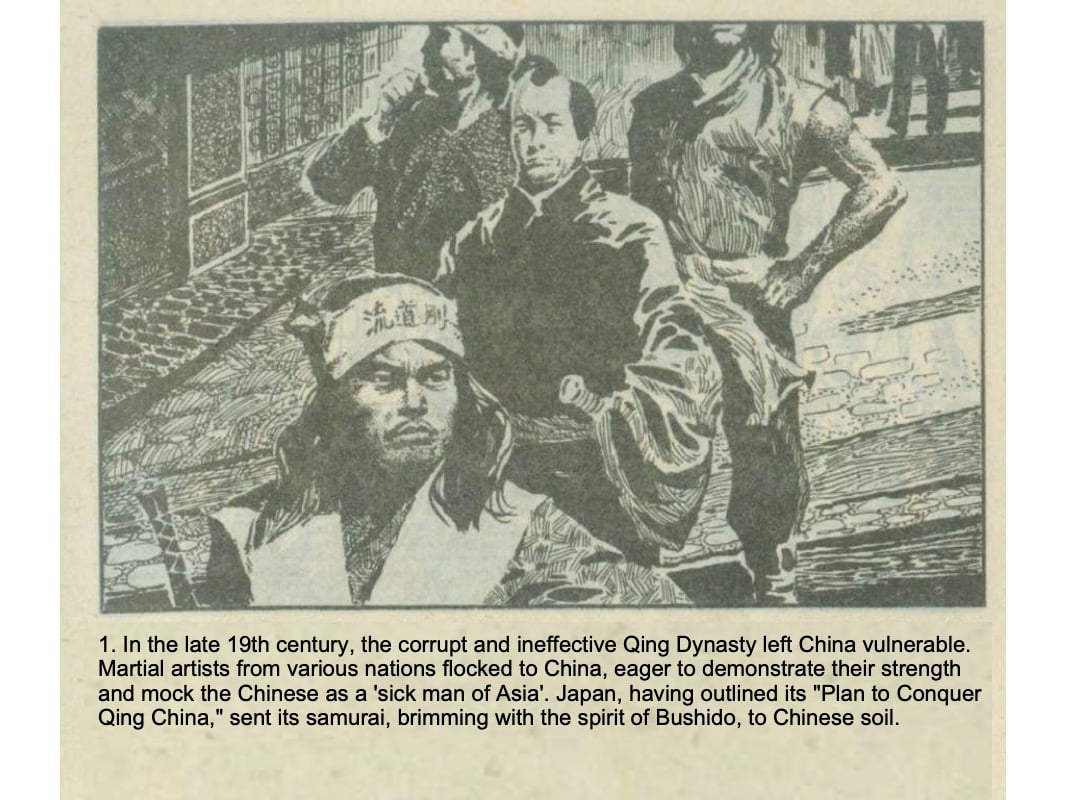 1. In the late 19th century, the corrupt and ineffective Qing Dynasty left China vulnerable. Martial artists from various nations flocked to China, eager to demonstrate their strength and mock the Chinese as a 'sick man of Asia'. Japan, having outlined its "Plan to Conquer Qing China," sent its samurai, brimming with the spirit of Bushido, to Chinese soil.