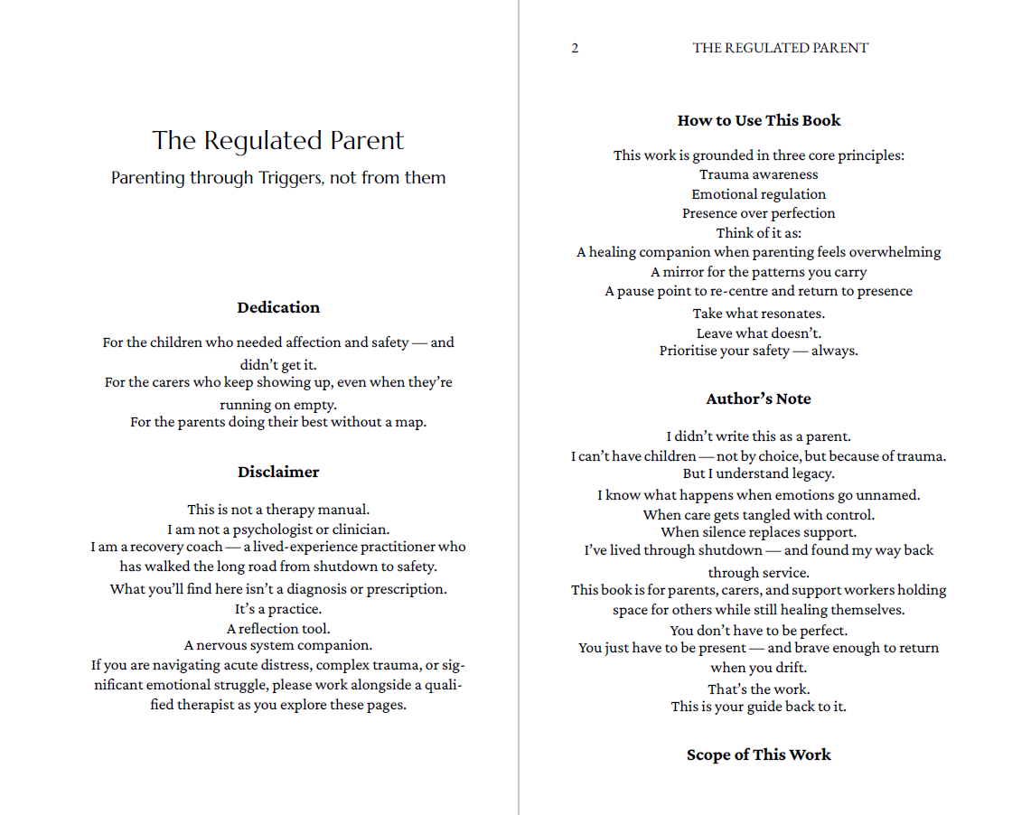 The Regulated Parent is a practical and compassionate guide for mothers, fathers, carers, and support workers who want to raise children without passing down the pain of unhealed cycles. Written by recovery coach and father Jyee Byrne, this book blends lived experience with trauma-informed insights to show how regulation — not perfection — becomes the foundation of safe, connected parenting.