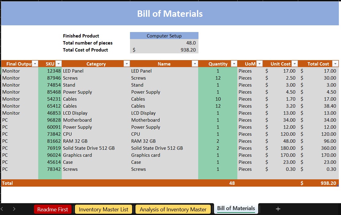Bill of Material(BOM) Template Sheet will help you to Costing your production with easy and Effective Way.
