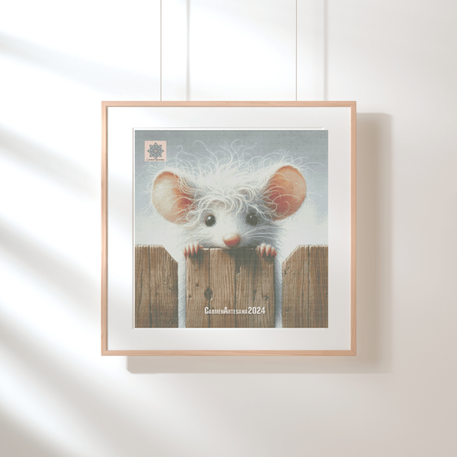 PDF cross stitch pattern, PEREZ MOUSE; instant download, English/Español