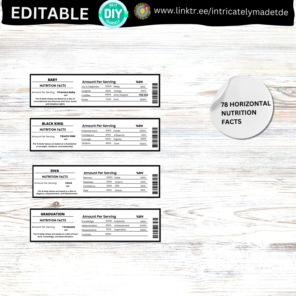 They are editable in Canva. Perfect for placing onto your Candy Bars, etc. Edit them to fit your needs.