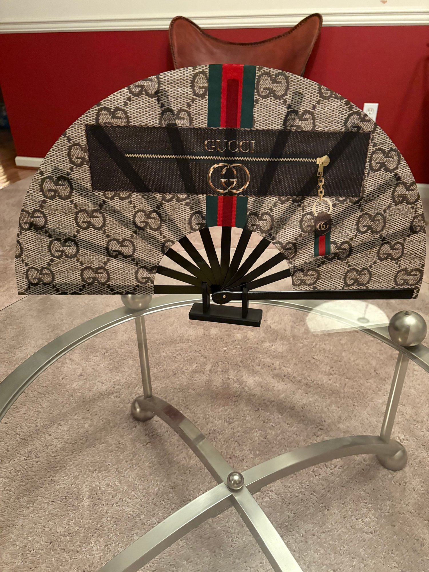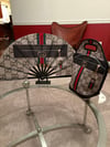 Handmade clack fan, please allow up to 2 business days for your fan to ship. Please message me first for custom orders. Fan measures approximately 26 inches wide by 13 inches wide and lunch bag measures 13.75 inches high by 11.7 inches wide