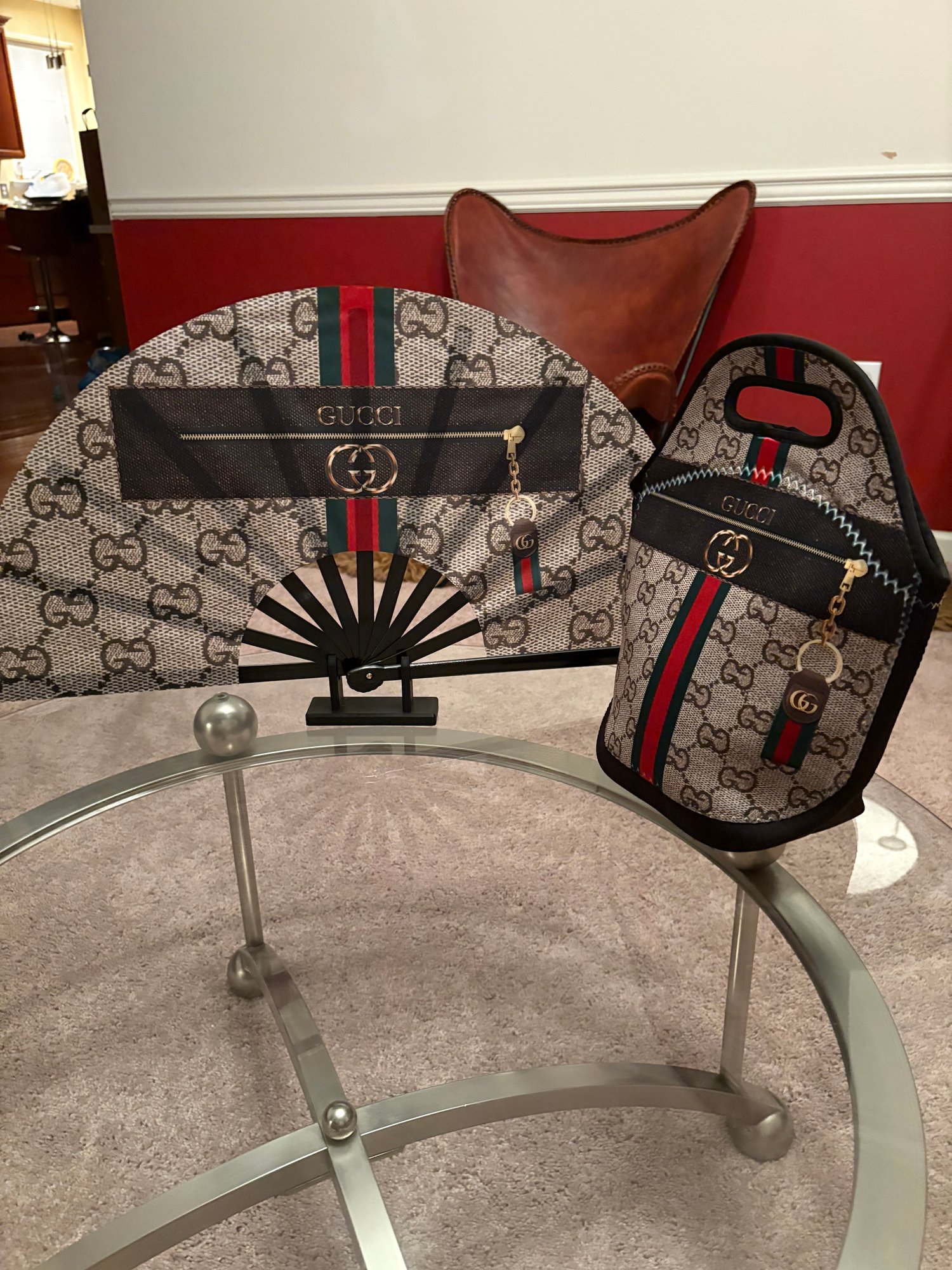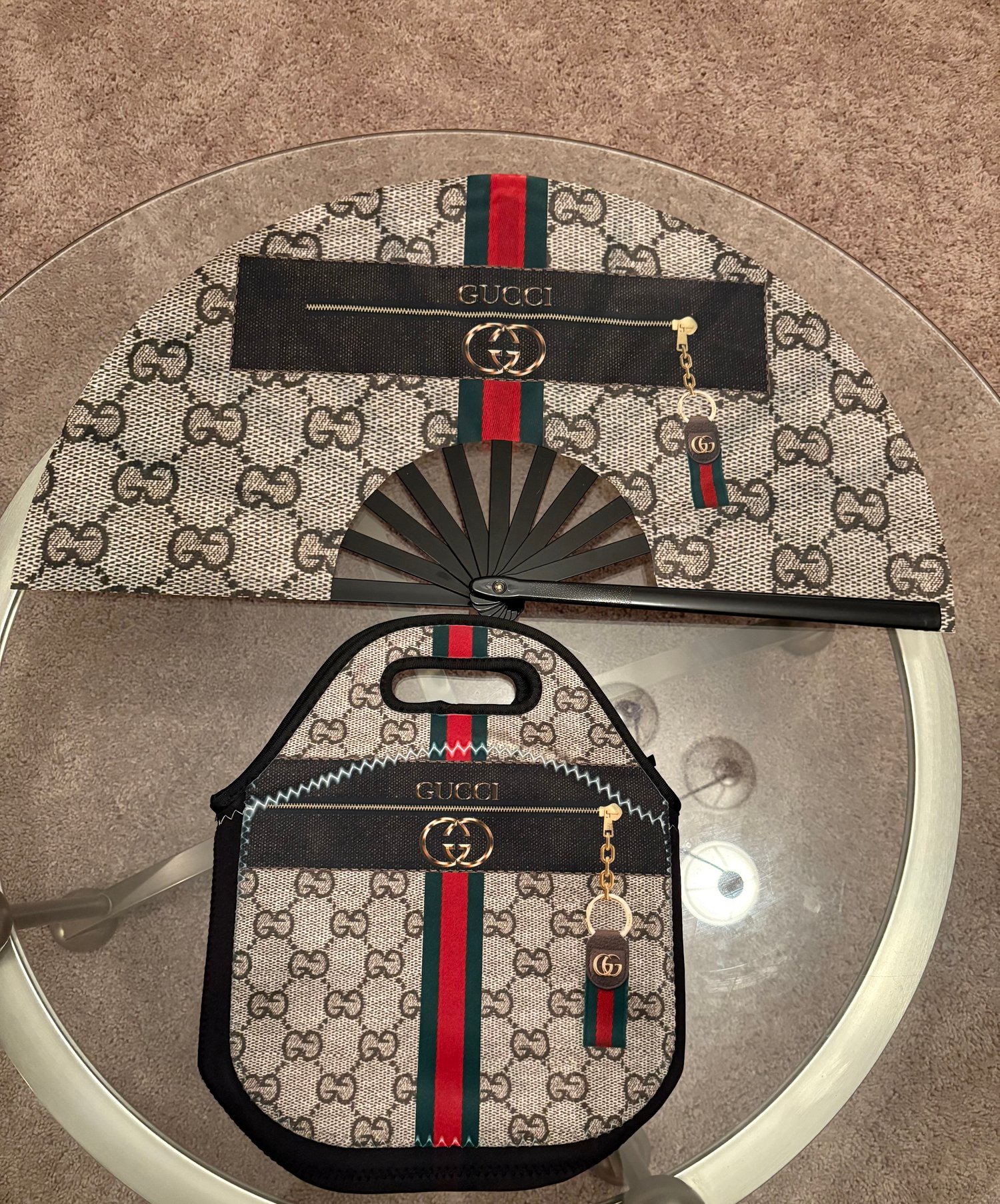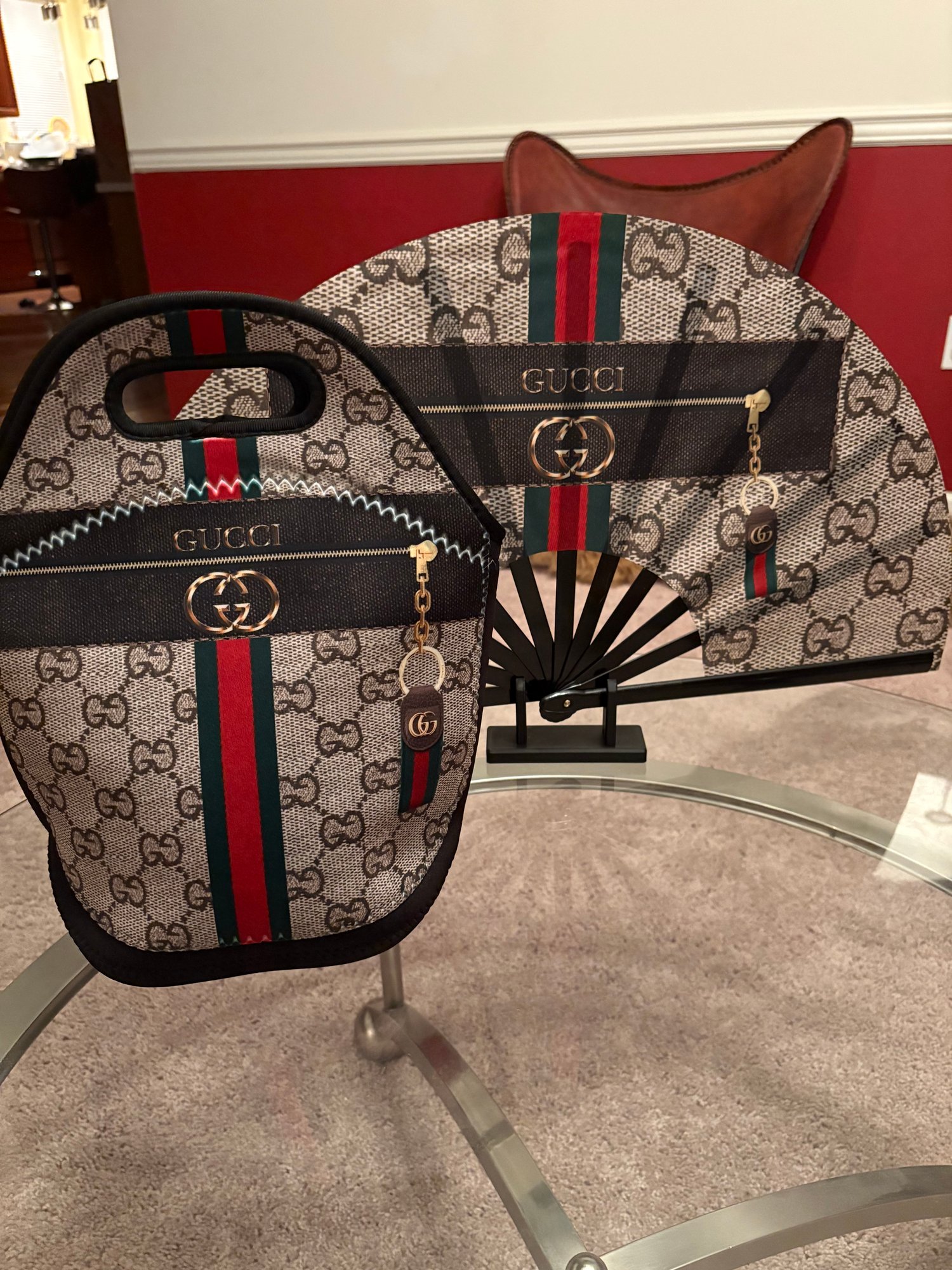 Tan and Brown Gcc Clack Fan with Optional Matching Gcc Lunch Bag