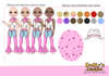 four different skin tones, three eye colours and 14 hair colours in one hairstyle)