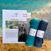 The idea for this wrap was to use two sock-blank fades which both start off dark in colour but slowly transition to the natural yarn colour as you knit them. The wrap starts by casting on the first colour at the darkest end and then knitting on the bias which creates this lovely horizontal stockinette and lace wave pattern. If you are familiar with my patterns you may recognise this stitch pattern from ‘Reach for the Stars’ or ‘Lasso the Moon’, the stitch pattern is the same for this wrap. If you are new to knitting lace, a video tutorial on how to work the yo, k2tog stitch combination can be found here https://www.undertheolivetreeknits.com/lace-stitches.html