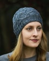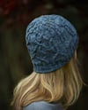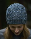 For me this cable design stirs up images from Murakami’s mesmerizing novels, many of which I have read repeatedly. Born out of a 2x2 brim, the cables take both expected and unexpected paths for a dreamlike—dare we say magical—effect.