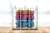 “Stuck on Stupid, Dipped in Dumb” features a cracked-texture gradient in pink, purple, and blue with standout block lettering. It’s a perfect fit for tees, mugs, tumblers, journals, and more.