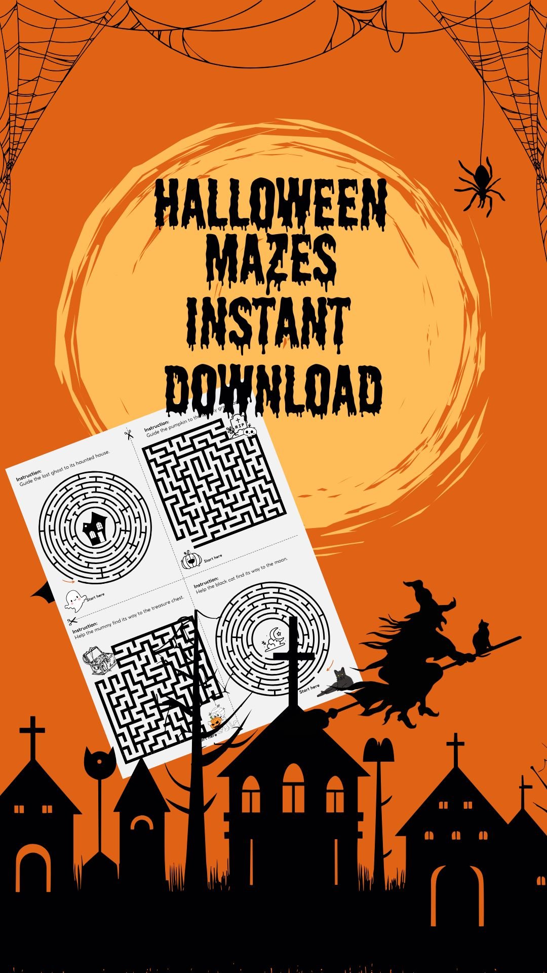 Kids Halloween Maze Bundle – 4 Fun Mazes on 1 Page