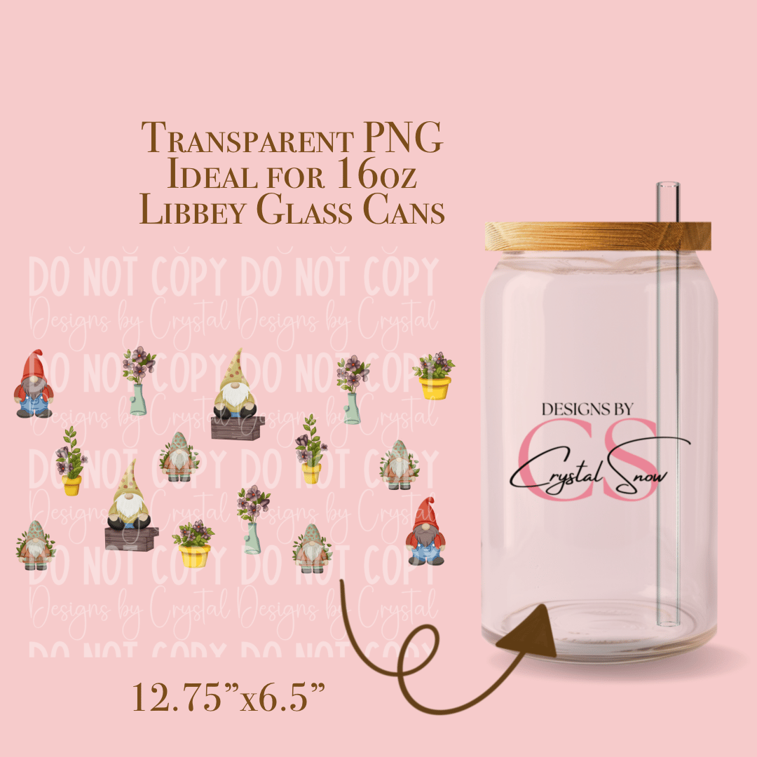 Farmhouse Country Garden Gnomes 16oz Libbey Glass Can Wrap