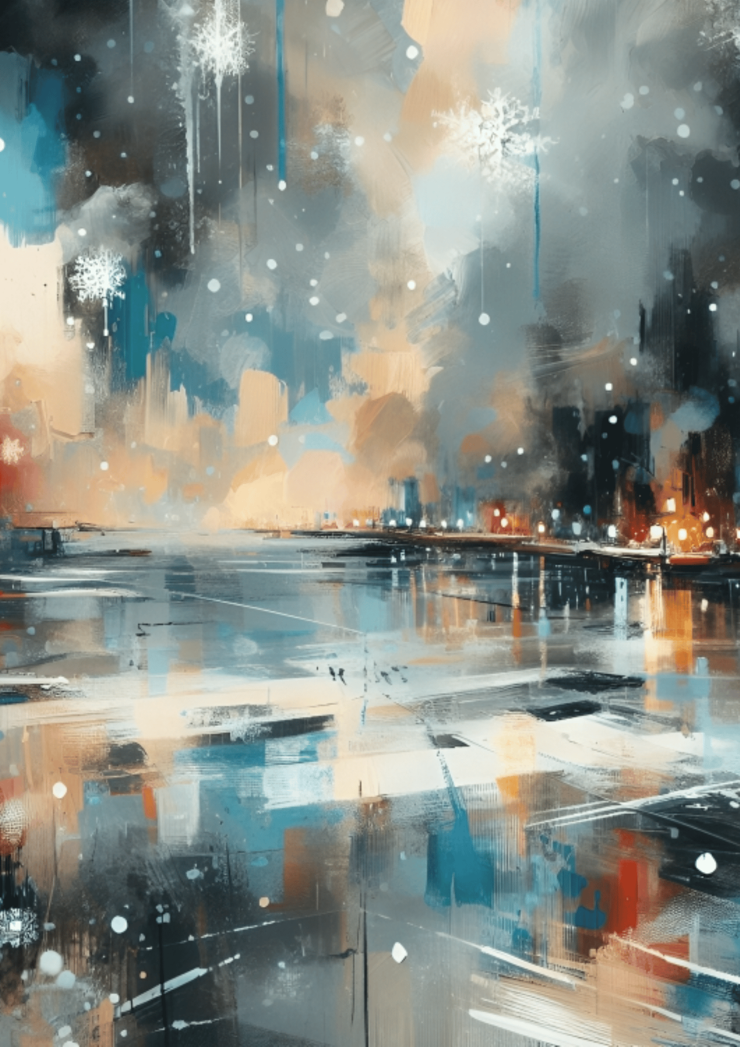Color expedition, Snowfall, Snowflake, Snow Abstract Art.