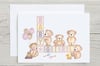 You get 5 teddies in different poses with pink ribbons and 5 teddies with yellow ribbons as well as some baby toys to add to your design.