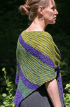 Every spring I look forward to the first signs of green outside signaling the end of long, dark, grey winter days. The bright greens of new leaves are intoxicating and refreshing to me, as are the abundance of flowers that follow. This bias knit shawl is worked in 3 colors emulating fresh spring growth, incorporating short rows and lace.