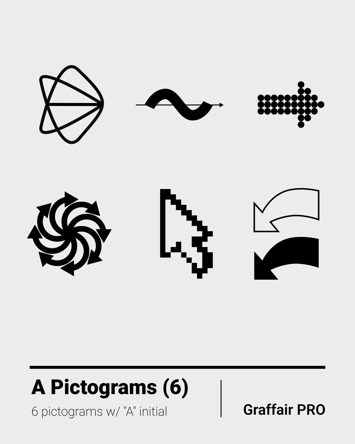A Pictograms (6): The sixth set of six pictograms, each starting with an "A". These pictograms are part of the "1150 SVG Pictograms" mega bundle, which includes 1150 others.