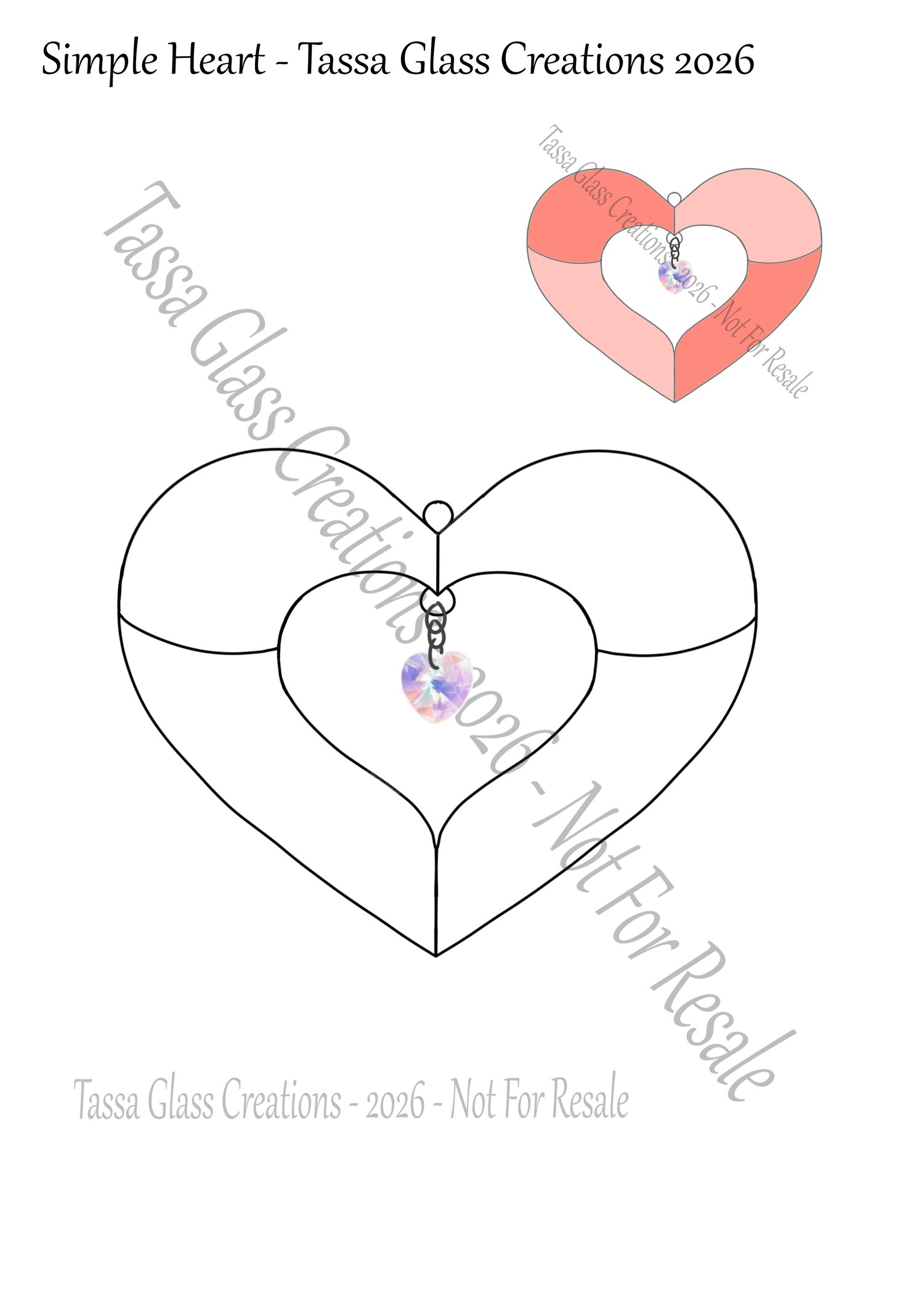 A small and simple heart pattern. The center has no glass but could be made with glass if you wanted to. I prefer to add a small dangling glass heart charm as pictured in my pattern. Very easy pattern for beginners.