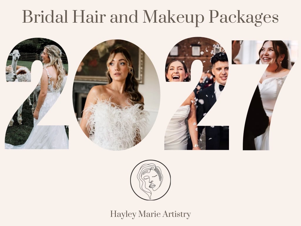 Bridal Hair and Makeup Prices and Packages for 2027. Suitable for brides and the bridal party (Bridesmaids, Flowergirls, Mother of the Bride and Mother of the Groom). HD airbrushing available