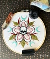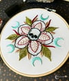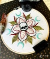 For all skull lovers with a penchant for the mystical! Embroider your own occult inspired crescent moon and skull design. This downloadable pattern, made specifically for a 7-inch hoop, is perfect for weavers who crave a witchy or pagan aesthetic.