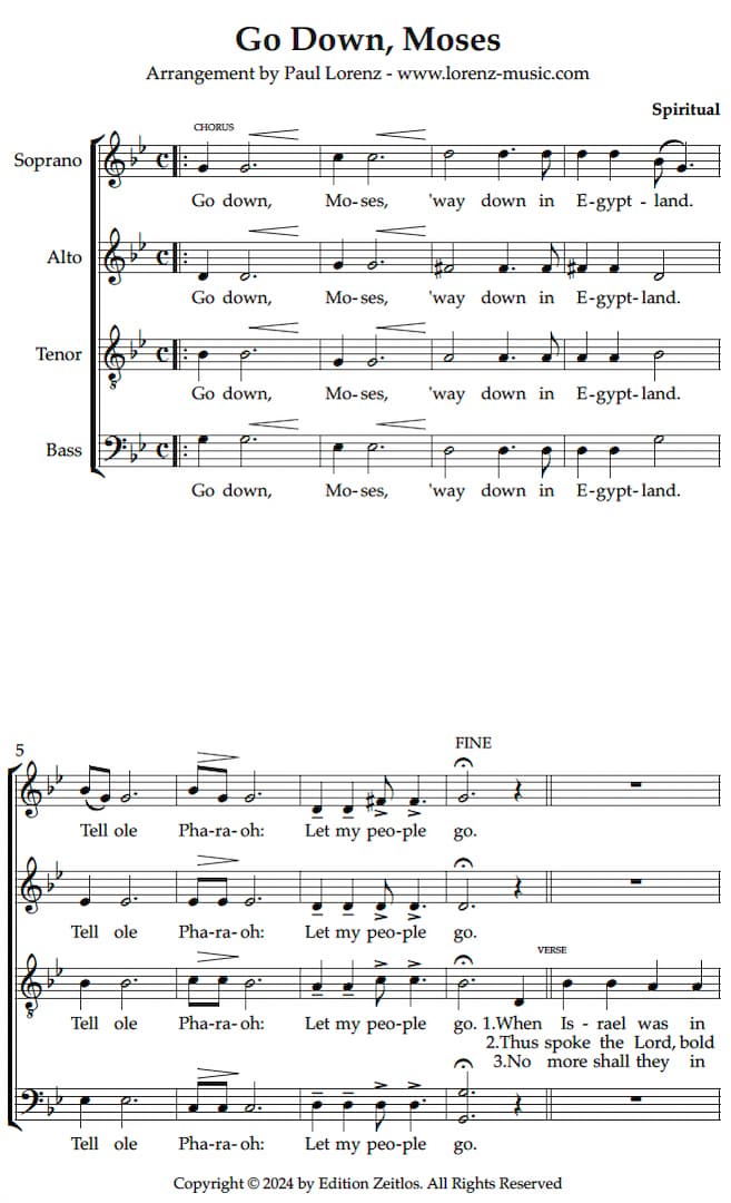Go Down, Moses – Sheet Music For Choir (SATB) PDF Download