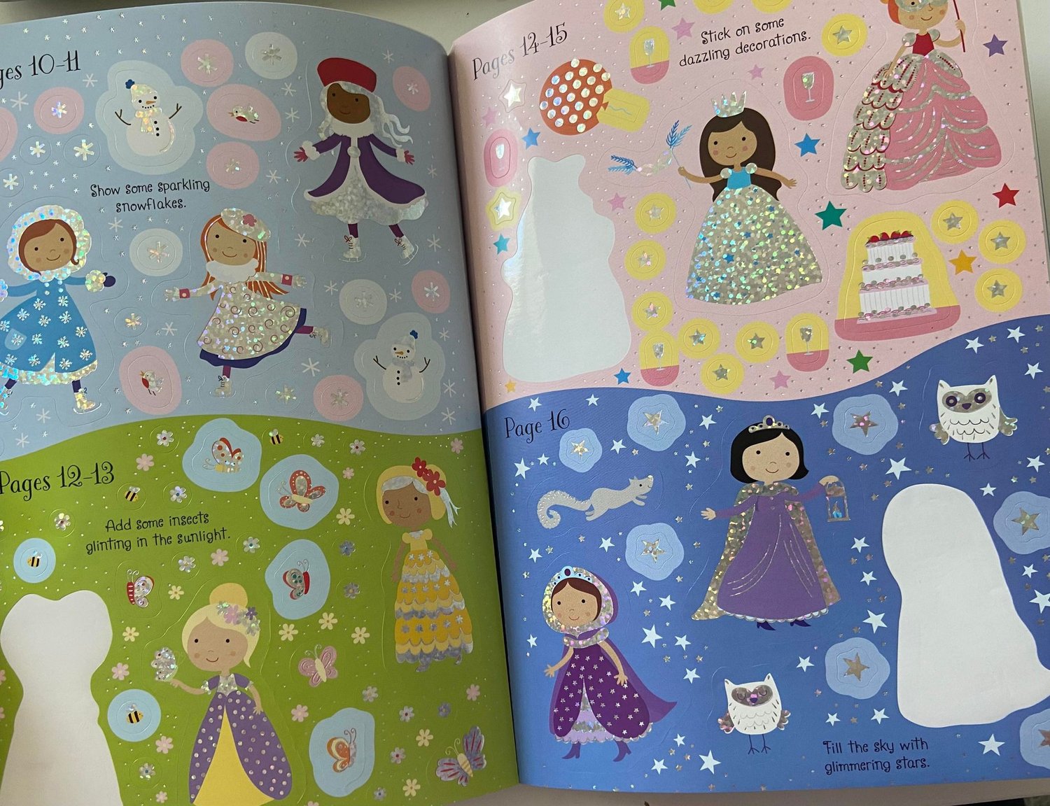 Sticker book with repositionable stickers - was a sample sticker book at book fairs and has writing on cover "Try Me" and several stickers already used.